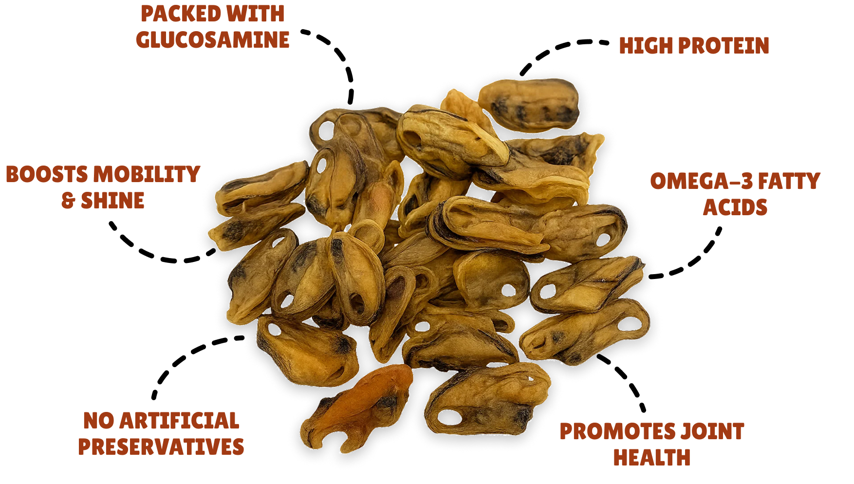 Natural Joint Support for Dogs: These freeze-dried green-lipped mussel toppers are rich in chondroitin and glucosamine, essential for promoting healthy joints and cartilage. Ideal high protein treat for dogs suffering from arthritis, hip dysplasia, and joint pain